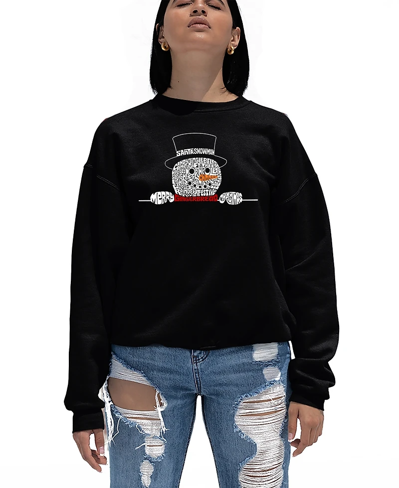 La Pop Art Women's Peeking Snowman Word Crewneck Sweatshirt