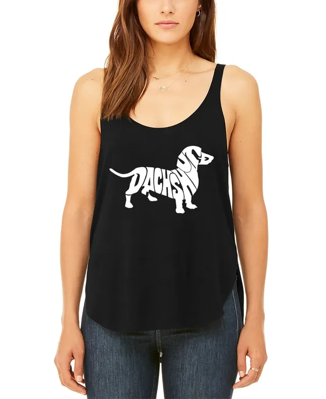 La Pop Art Women's Premium Dachshund Word Flowy Tank Top