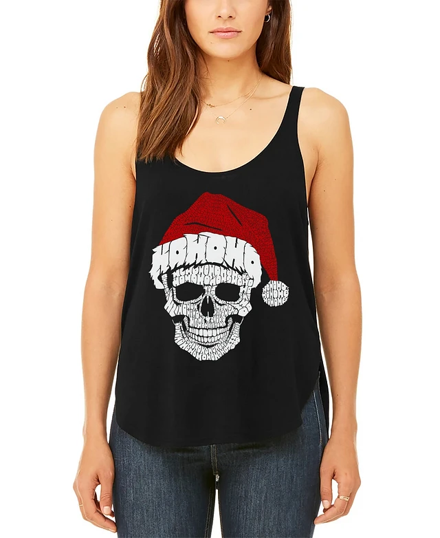 La Pop Art Women's Santa Skull Premium Word Flowy Tank Top