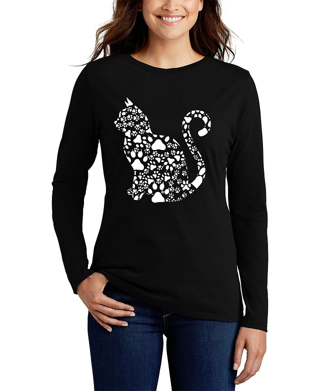 La Pop Art Women's Word Cat Paws Long Sleeve T-Shirt