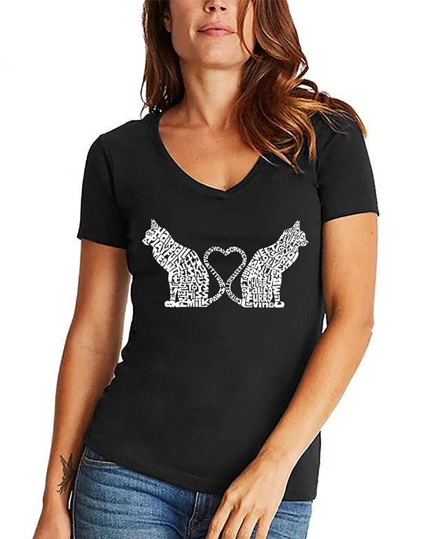 La Pop Art Women's Cat Heart Word V-neck T-shirt