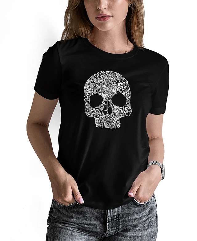 La Pop Art Women's Word Flower Skull Short Sleeve T-shirt