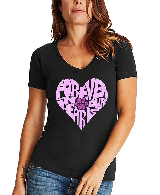 La Pop Art Women's Word Forever Our Hearts V-Neck T-Shirt