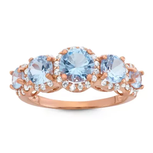 Lab-Created Aquamarine & White Sapphire 14K Gold Over Silver Ring