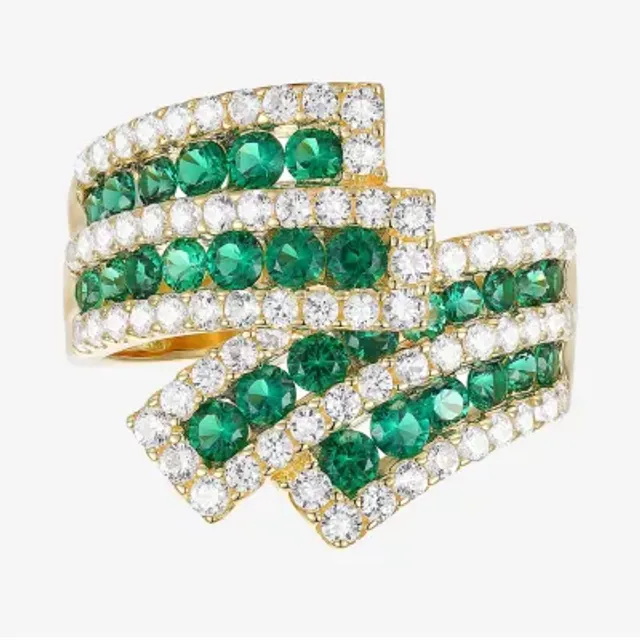 Lab Created Gemstone 14K Gold Over Silver Crossover Cocktail Ring