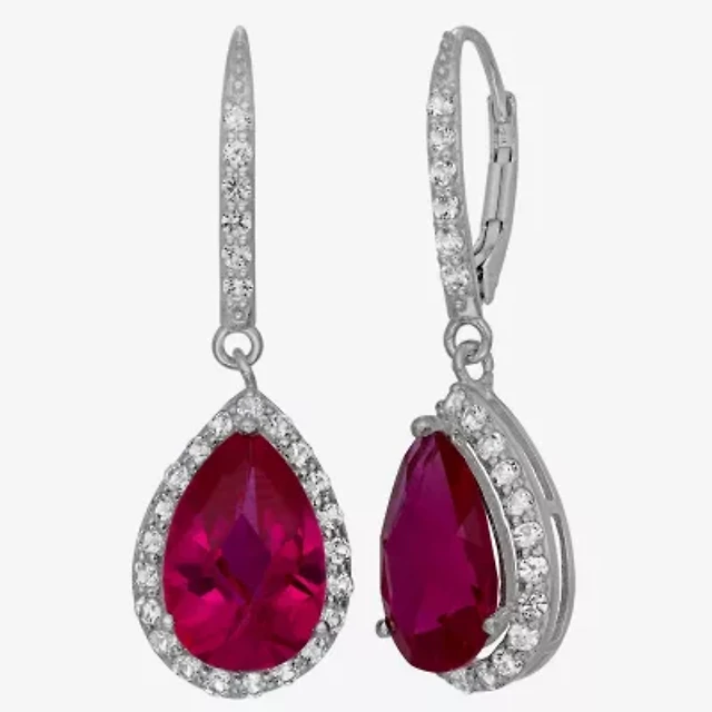 Lab-Created Ruby & White Sapphire Sterling Silver Earrings