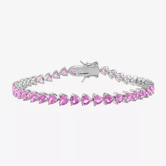 Womens Lab Created Pink Sapphire 18K Gold Over Silver 7.25 Inch Tennis Bracelet