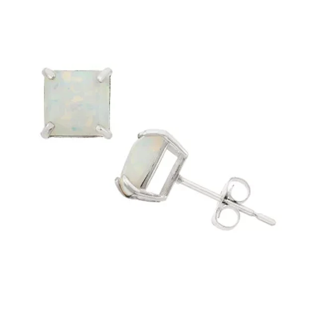 Lab Created White Opal 10K Gold 6mm Stud Earrings