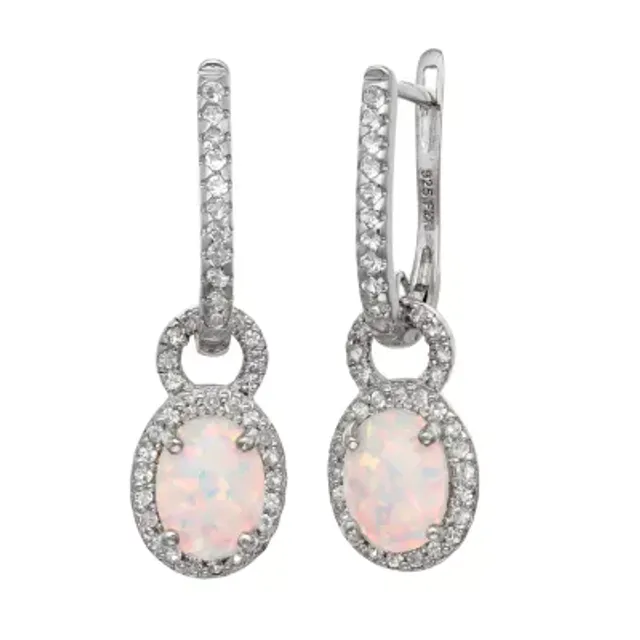 Lab Created White Opal Sterling Silver Oval Drop Earrings