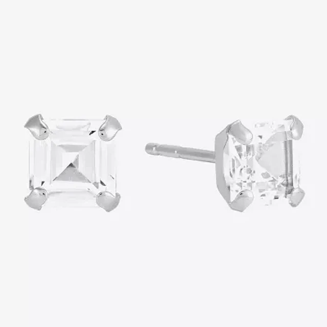 Lab Created White Sapphire 14K White Gold 5mm Square Stud Earrings