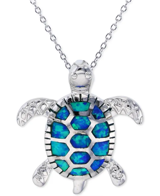 Lab-Grown Blue Opal Turtle 18" Pendant Necklace in Sterling Silver