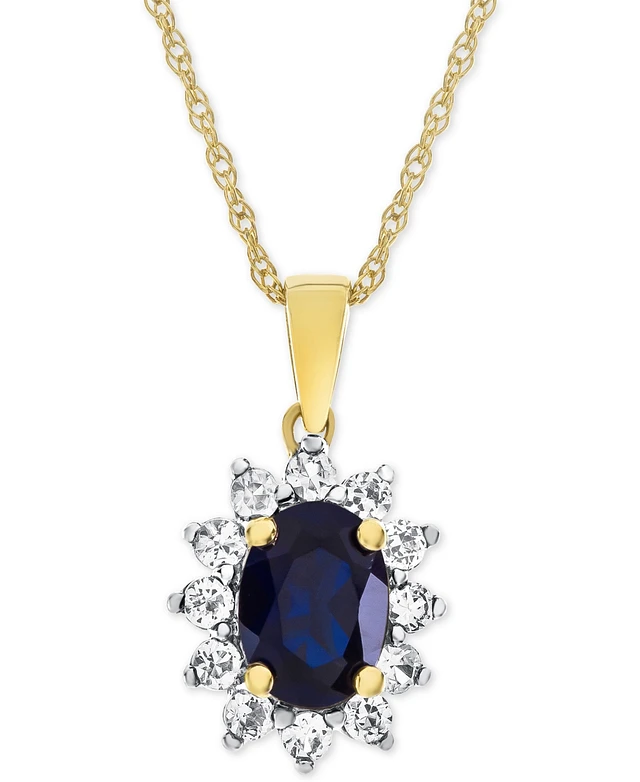 Lab-Grown Blue Sapphire (5/8 ct. t.w.) & Lab-Grown White Sapphire (1/3 ct. t.w.) Halo 18" Pendant Necklace in 14k Gold (Also in Citrine & Lab-Grown Op
