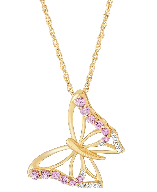 Lab-Grown Pink Sapphire (3/8 ct. t.w.) & Lab-Grown White Sapphire (1/20 ct. t.w.) Butterfly Pendant Necklace in 14k Gold-Plated Sterling Silver, 16" +