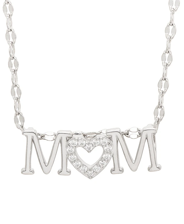Lab-Grown White Sapphire Mom Heart 18" Pendant Necklace (1/8 ct. t.w.) in Sterling Silver