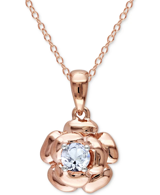 Lab-Grown White Sapphire Rose 18" Pendant Necklace (1/3 ct. t.w.) in Rose-Plated Sterling Silver