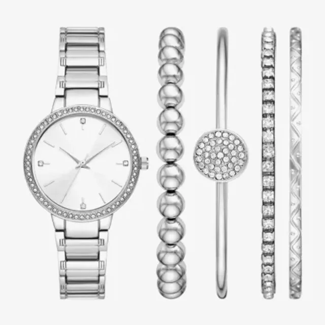 Ladies Sets Womens Crystal Accent Silver Tone Stainless Steel 5-pc. Watch Boxed Set Fmdjset324