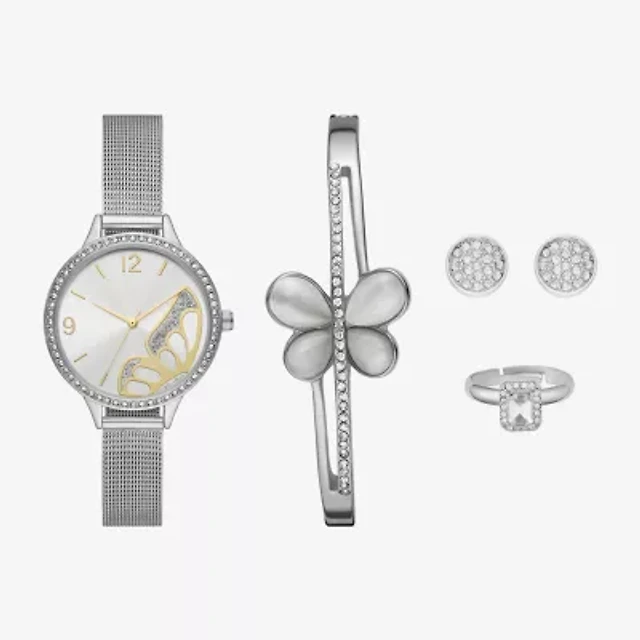Ladies Boxed Sets Womens Crystal Accent Silver Tone 5-pc. Watch Boxed Set Fmdjset354