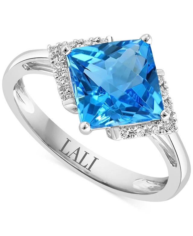 Lali Jewels Swiss Blue Topaz (3-3/8 ct. t.w.) & Diamond (1/20 ct. t.w.) Ring in 14k White Gold