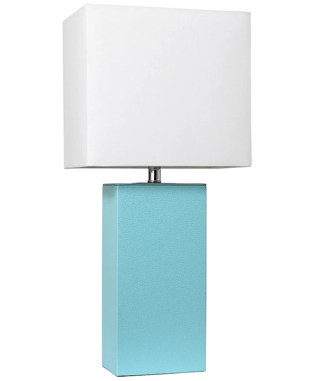 Lalia Home Lexington 21" Leather Base Modern Decor Bedside Table Lamp with White Rectangular Fabric Shade