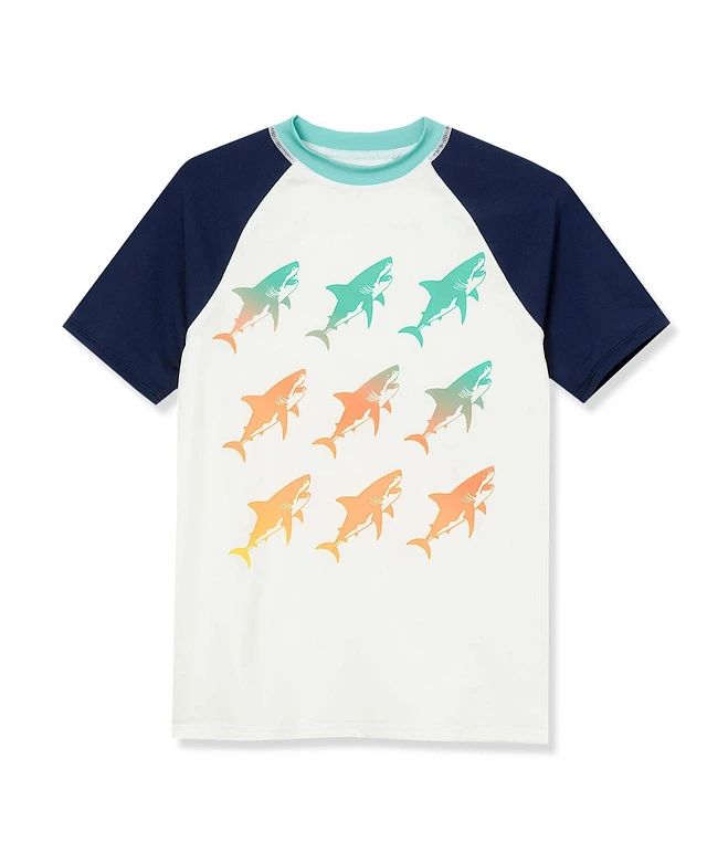 Lands' End Big Boys Husky Chlorine Resistant Short Sleeve Crew Neck Upf 50 Rash Guard