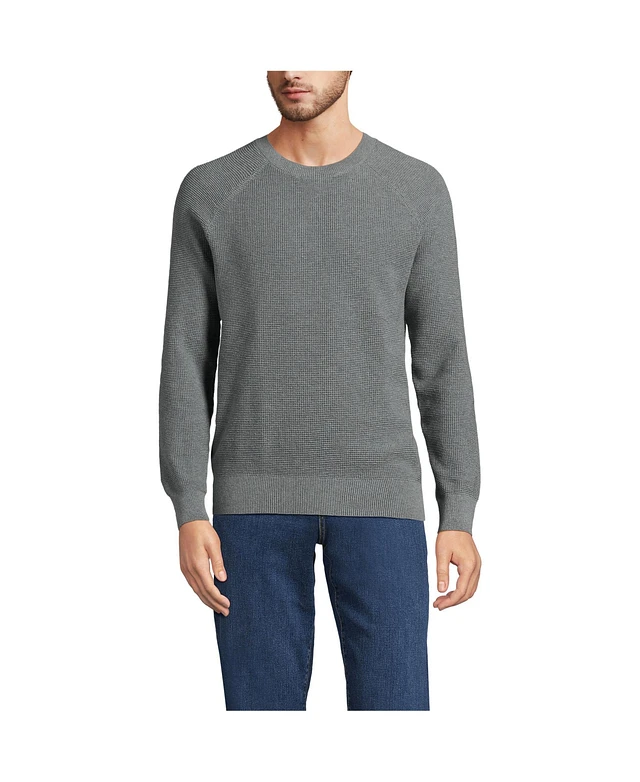 Lands' End Men's Long Sleeve Cotton Cashmere Waffle Sweater