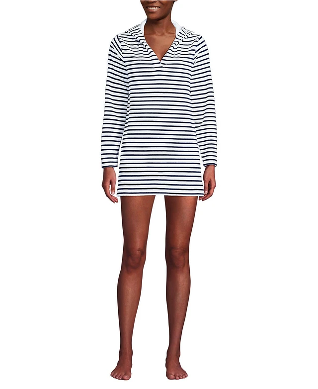 Lands' End Petite Terry Hooded Mini Swim Cover-up Dress