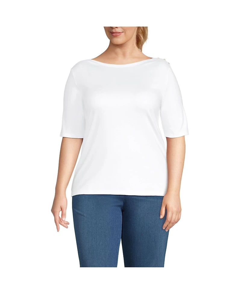 Lands' End Plus Supima Cotton Elbow Sleeve Boatneck Button Shoulder Tee