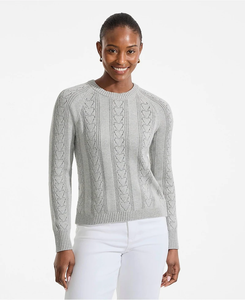Lands' End Women's Drifter Raglan Pointelle Crew Neck Sweater