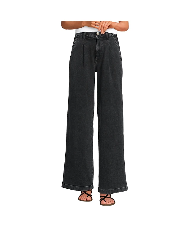 Lands' End Women's High Rise Soft Denim Pleated Wide Leg Trousers