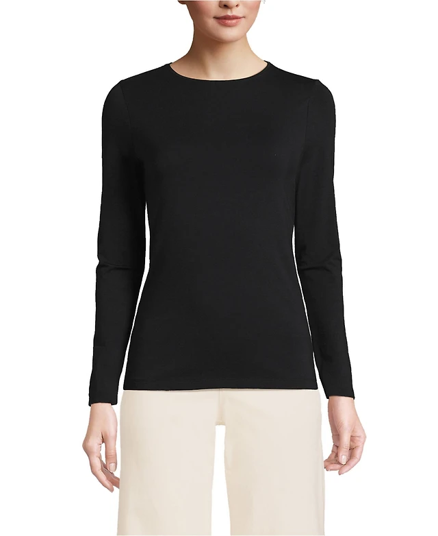 Lands' End Women's Lightweight Jersey Skimming Long Sleeve Crew Neck T-shirt