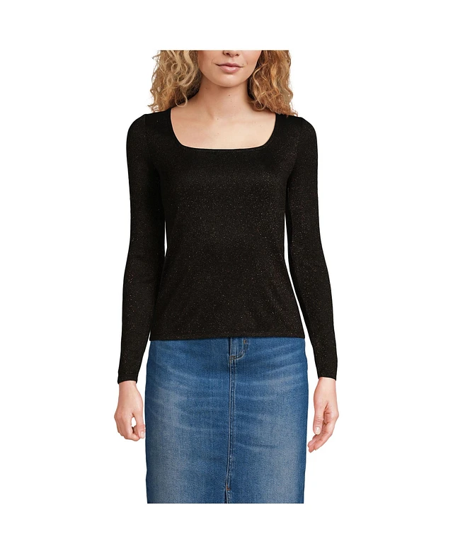 Lands' End Women's Long Sleeve Rib Square Neck Tee