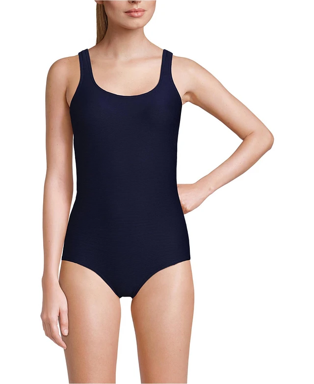 Lands' End Women's Long Tugless Low Leg Ribbed One Piece Swimsuit