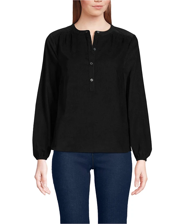 Lands' End Women's Pinwale Cord Smocked Popover Shirt