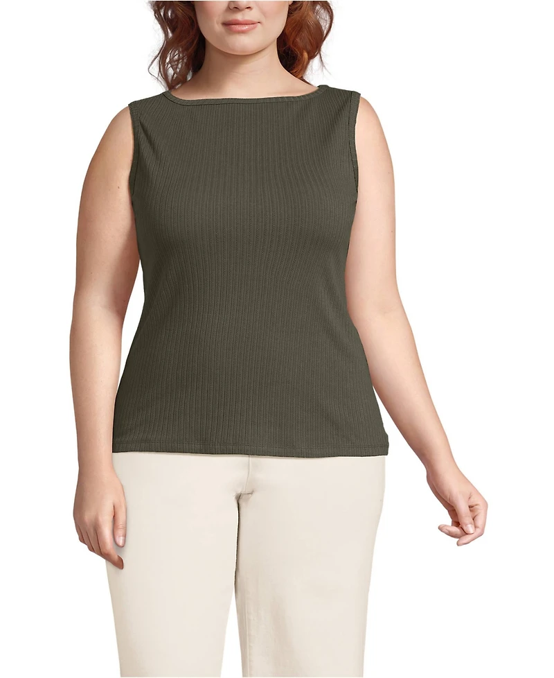 Lands' End Women's Plus Sleeveless Pointelle Rib Boat Neck Tank