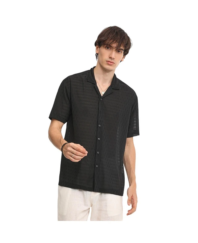 Men's Sky Blue & Ivory White Strokes-Textured Shirt
