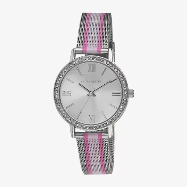 Laura Ashley Women's Mini Link Crystal Bezel Pink Alloy Bracelet Watch 26mm
