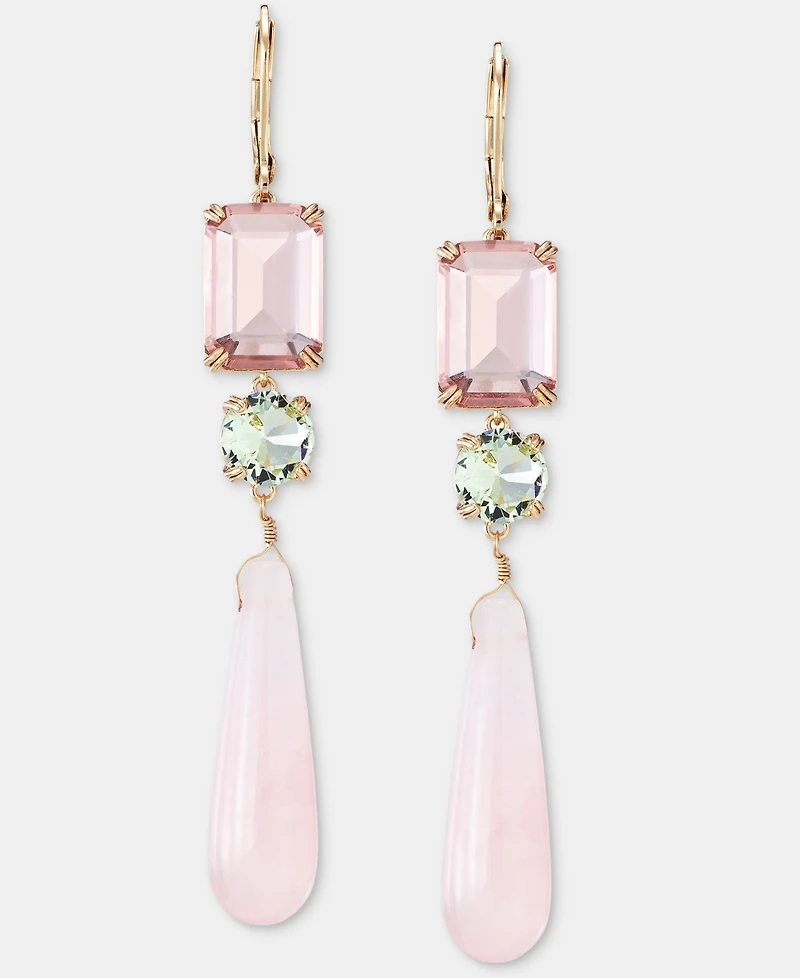 Lauren Ralph Lauren Gold-Tone Glass Stone Mixed Cut Triple Drop Earrings
