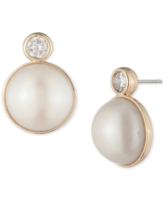 Lauren Ralph Lauren Gold-Tone Bezel Acrylic Pearl Stud Earrings
