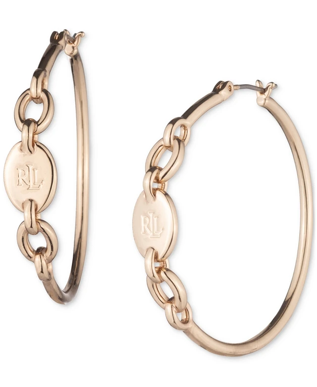 Lauren Ralph Lauren Gold-Tone Logo Chain Link Medium Hoop Earrings, 1.5"