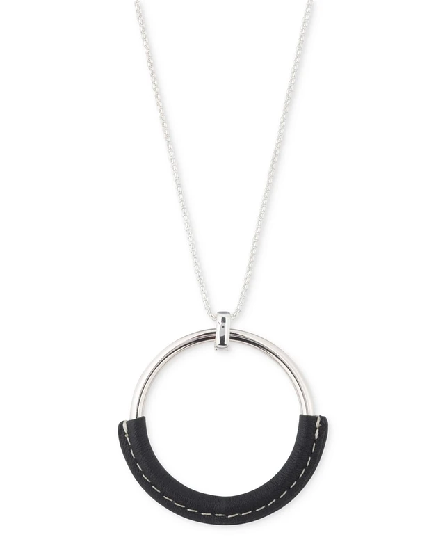 Lauren Ralph Lauren Silver-Tone Black Leather 36" Adjustable Slider Pendant Necklace
