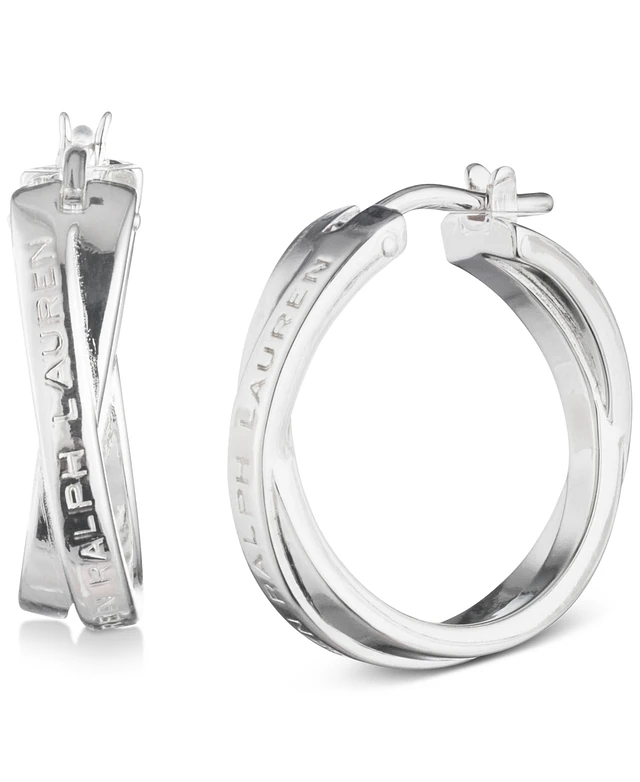 Lauren Ralph Lauren Sterling Silver Small Logo-Etched Intertwined Hoop Earrings, 0.77"