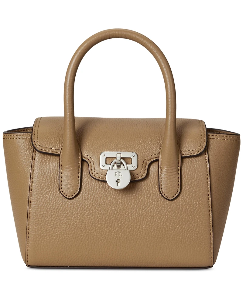 With a spacious yet compact silhouette and an ""Lrl""-engraved padlock charm at the flap, this small satchel from Lauren Ralph Lauren is a sophisticated addition to the Tanner collection.