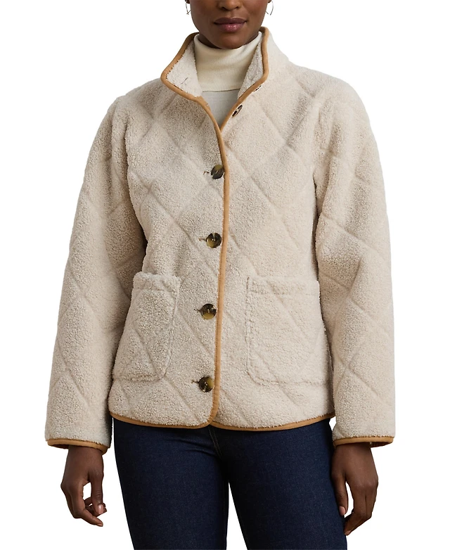 Lauren Ralph Lauren Womens Faux Sherpa Collar Quilted Coat P Xs Xxl