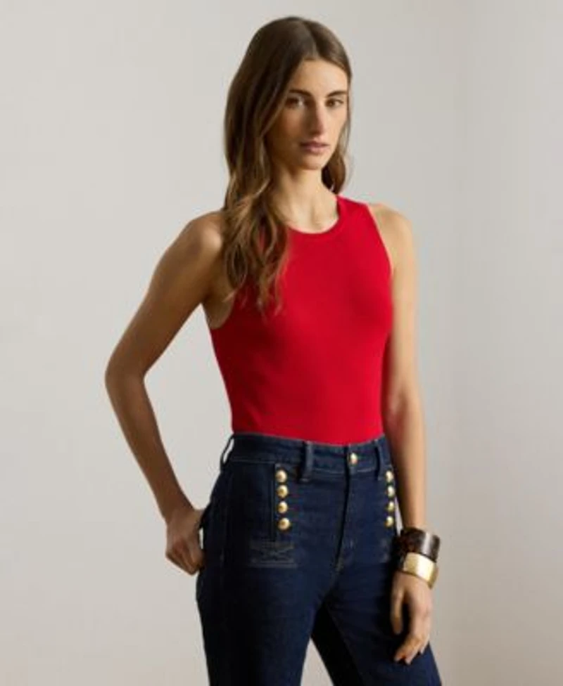 Elevate your layering with this rib-knit sleeveless sweater by Lauren Ralph Lauren, featuring subtle texture for added dimension. Its slim fit and crewneck create a flattering silhouette with a polished, refined touch.