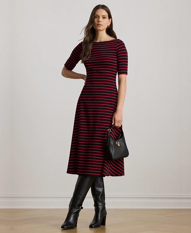 Lauren Ralph Lauren Women's Striped Stretch Cotton Midi Dress