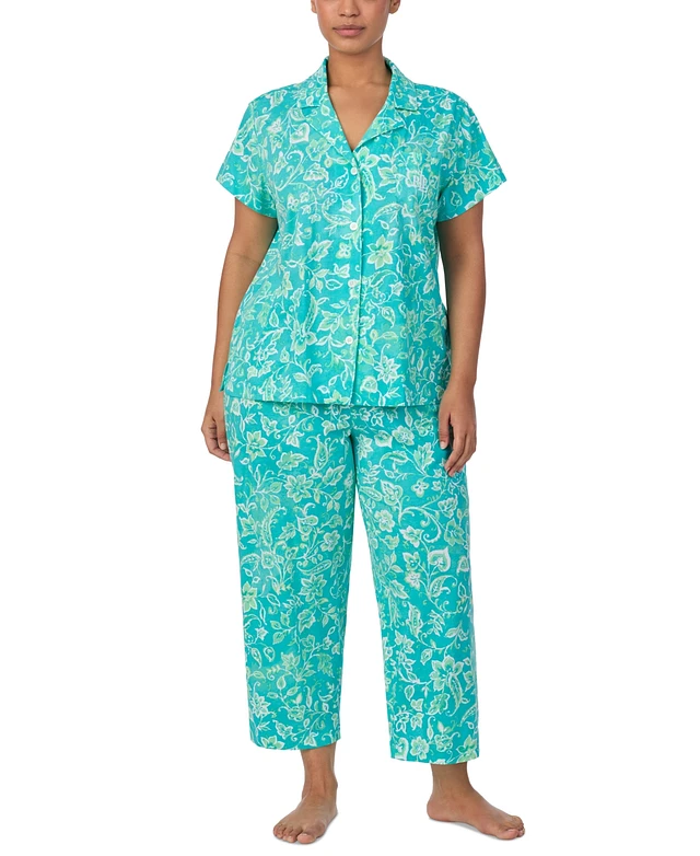 Lauren Ralph Plus Short-Sleeve Notch-Collar Cropped Pajama Set