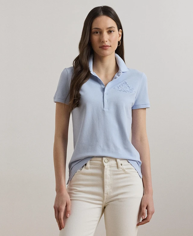 Lauren Ralph Women's Floral-Logo Cotton Pique Polo Shirt