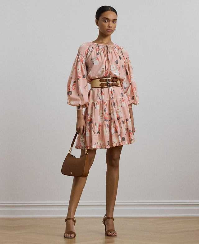 Lauren Ralph Women's Floral Voile Tiered Tie-Neck Dress