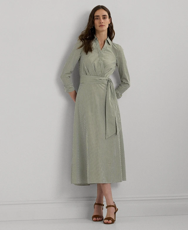 Lauren Ralph Women's Striped Surplice Broadcloth Midi Dress