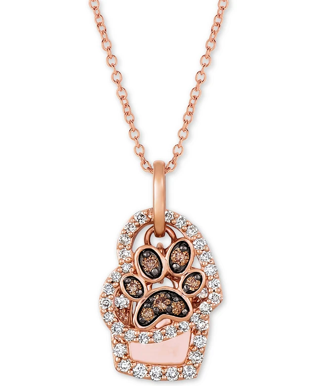 Le Vian Nude & Chocolate Diamond Paw Print & Heart 20" Pendant Necklace (7/8 ct. t.w.) in 14k Rose Gold
